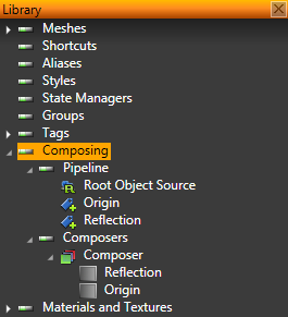 In this step you first create two tag filters: one to collect all origin objects (tagged Origin), the other to collect all instantiator nodes you use for reflections (tagged Reflection). Then you create two render passes: one to render all origin objects and the other to render all reflections.