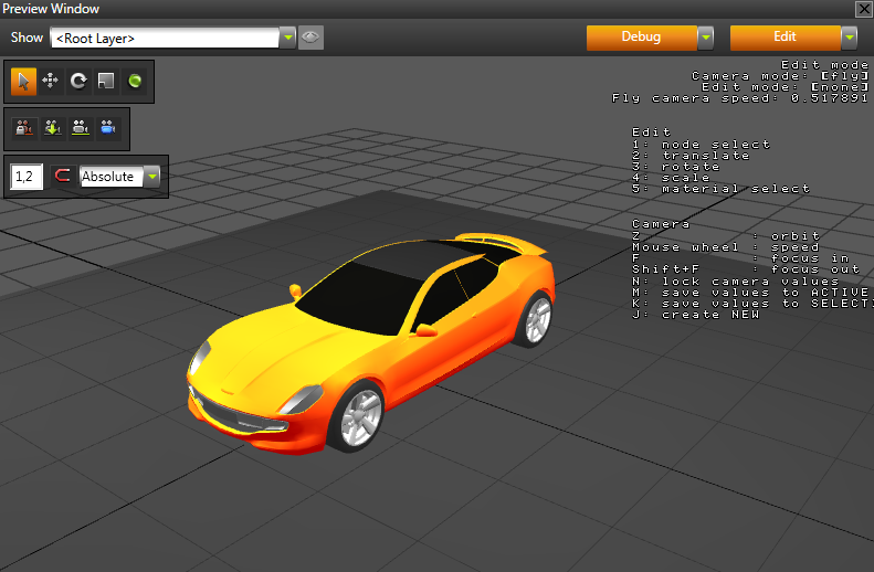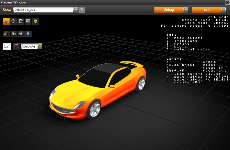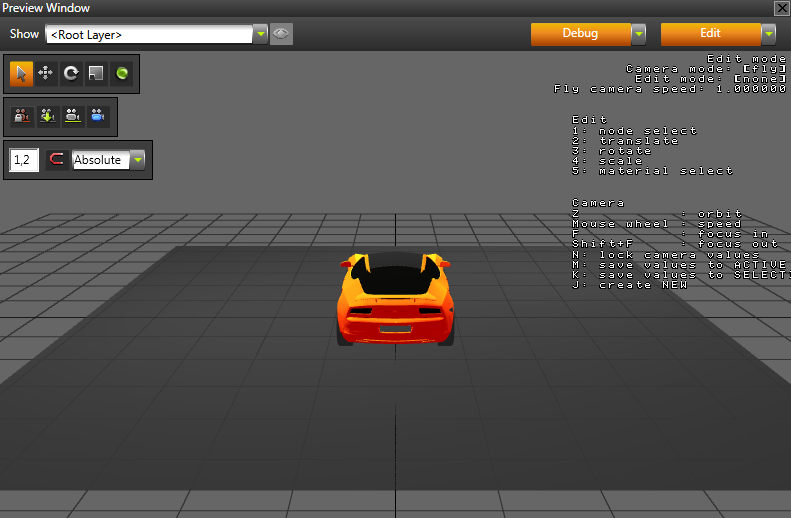 | Hold down Z | Activate the orbit camera. Use the orbit camera to rotate around the center point of the Preview. |