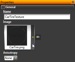 - In the Properties set the Image property of the CarRimsTexture to CarRim.png.