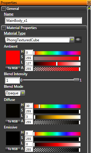 In this final step of the tutorial you change the properties of the MainBody_x1 material to: