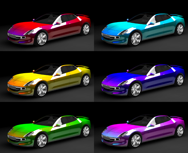 When you want to create a two tone paint effect, first set the ambient color and then set the color of the second paint by adjusting the Specular Color properties of the same material.