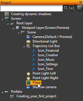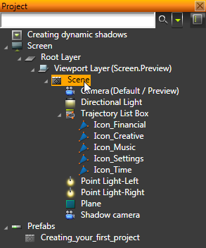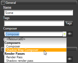 - In the Project select the scene where you want to create dynamic shadows, and in the Properties set the Composer property to the Shadow Map Composer.