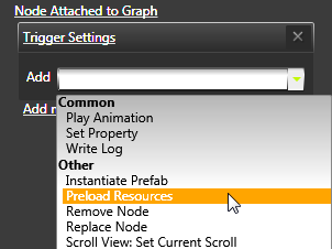 - In the Properties > Node Attached to Graph trigger click the drop-down menu, and select Preload Resources action.