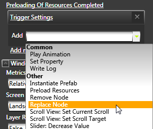- In the Properties click the drop-down menu for the Preloading of Resources Completed trigger, and select Replace Node action.