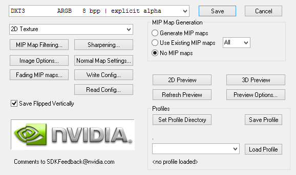 For example, you can use NVIDIA's DDS Adobe Photoshop plug-in with these settings: