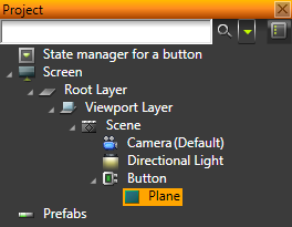 - In the Project create a Button object and add a mesh to it. See Using buttons.