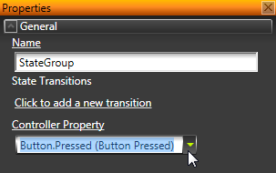 - In the Library select the State Group, and in the Properties set the Controller Property property to the property that sets the state of the state group.