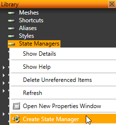 - In the Library right-click State Managers and select Create State Manager.