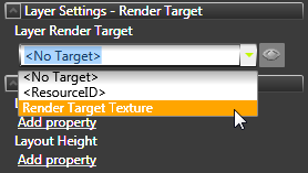 3. In the Properties click Add Properties, add Layer Render Target property, and set the property to the Render Target Texture to which you want to render the content of the selected layer.