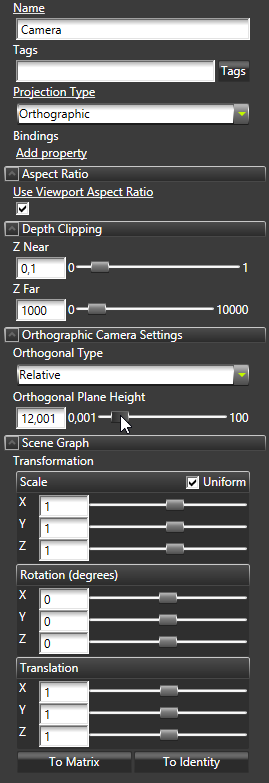 - Adjust the Orthogonal Plane Height property to set the distance between the list box and the camera.