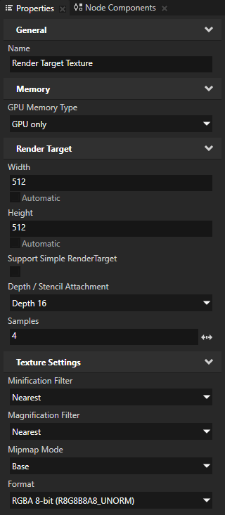 - Height and Width of the render target texture to the same values you use for the node for which you want to reduce aliasing.