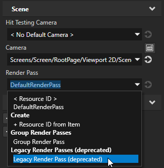 You can also create a Group Render Pass with one or more Legacy Render Pass (deprecated) resources. When you use more than one Legacy Render Pass (deprecated) you have to enable the Resolve After property only for the last Legacy Render Pass (deprecated).