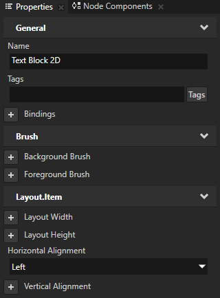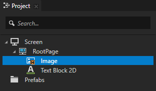 - In the Project window press Alt and right-click the RootPage node and select Text Block 2D.