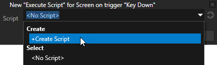 Trigger conditions enable you to set which conditions must be met for the trigger to set off. Here you set the Key Down trigger to be set off when the user presses a specific key on the keyboard. You set which key sets off the trigger in the next step of this section.