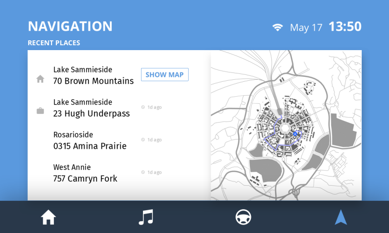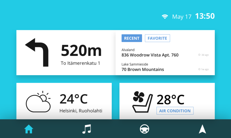 In the Preview press the Left Arrow key to navigate left between the Home, Media, Car, and application screens. You can now use the Right Arrow and Left Arrow keys to navigate between application screens.