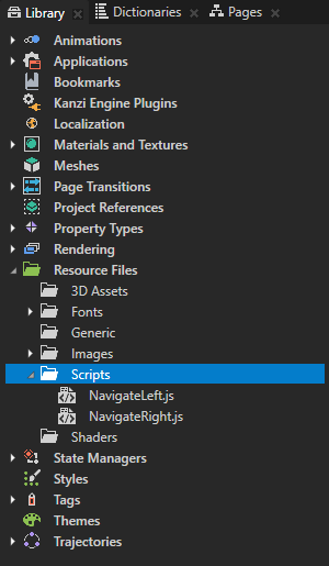 In this step of the tutorial you create keyboard navigation between the Home, Media, Car, and application screens. You use triggers with JavaScript scripts to set which node receives the key input when the user presses a key on their keyboard.