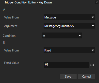 In the Trigger Condition Editor and the Trigger Settings Editor windows click Save.