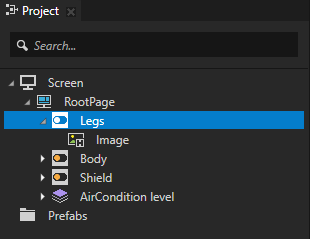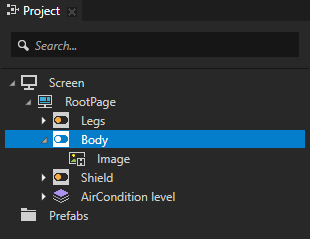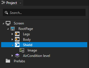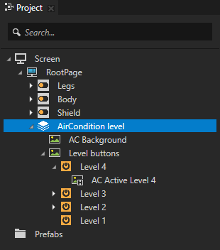 - A Stack Layout 2D node named AirCondition level contains the background image of the application user interface and an image node which contains: