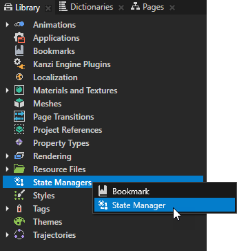 - In the Library press Alt and right-click the State Managers, select State Manager to create a state manager, and name it AC Controls.