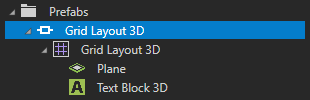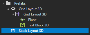 For example, to instantiate the Text Block 3D prefab in a Stack Layout 3D using the Button 3D you created in this procedure