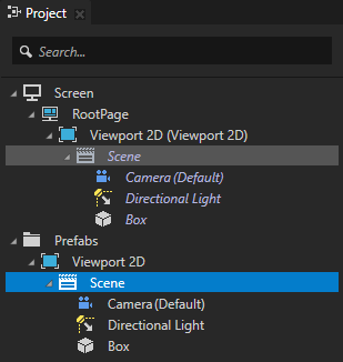 For example, if you use a Prefab View 2D node to instantiate a prefab which contains a Button 2D node, when Kanzi instantiates the prefab, it adds the root node of the Button 2D node as a child node of the Prefab View 2D node.