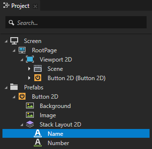 For example, if you use a Prefab Placeholder 2D node to instantiate a prefab which contains a Button 2D node, when Kanzi instantiates the prefab, it replaces the Prefab Placeholder 2D node with the root node of the Button 2D prefab.