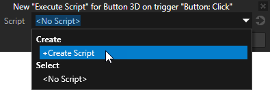 - In the Execute Script window select an existing script, or select + Create Script to create a new script.
