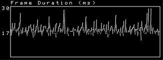 - Frame duration shows the time in milliseconds it took to render a frame. The top value in the Frame duration graph shows the longest, and the bottom value the average time it took to render a frame during the last 300 frames.