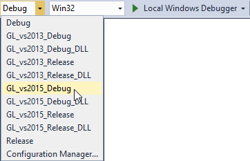 For example, if you are still developing your application, select the GL_vs2015_Debug configuration. If you want to create a production version of your Kanzi application, select one of the available release configurations.