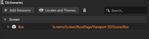 Kanzi Studio adds an alias to the nearest node with a Resource Dictionary. You use aliases in scripting and Kanzi Engine API to get the nodes regardless of where they are in the scene graph.
