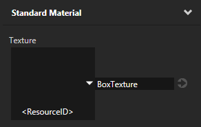 2. In the Properties add to the Box node the Texture property and set the value of the Texture property to the resource ID BoxTexture.