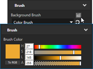 - In the Properties open the Background Brush property dropdown menu and select + Color Brush.