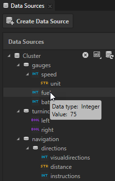Before you can use data from a data source you have to define a data source in a Kanzi Engine plugin and create a data source. See Defining a data source and Creating a data source.