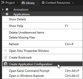 <include name="**/*.png"/>You can configure the building of your Kanzi applications for Android using the application configurations in Kanzi Studio. For example, you can set the target architecture, and whether Kanzi should deploy the built package to the attached target device. You can set which application configuration you want to use when you select > Export > Build Android Package in > in the Default Build Configuration property.