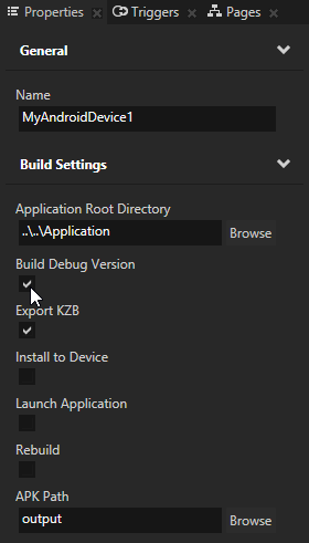 If your Kanzi application includes a Kanzi Engine plugin, you have to build and deploy your application manually. See Building and deploying Kanzi applications to Android manually.