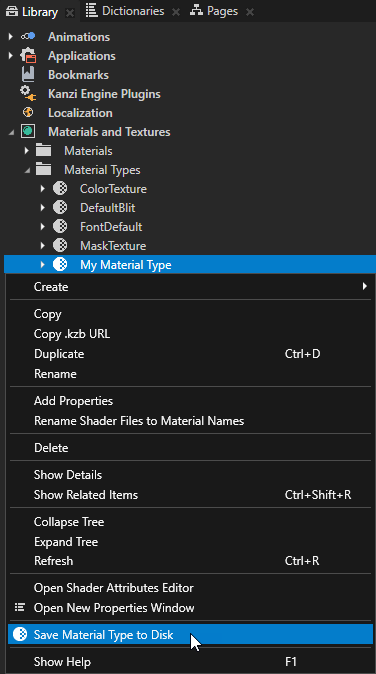 When you create a material type in your Kanzi Studio project, you can reuse the material type in another Kanzi Studio project.
