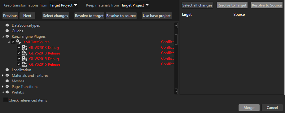 5. If you are merging projects that contain Kanzi Engine Plugins, see Merging projects with Kanzi Engine plugins.