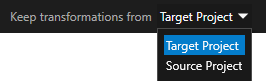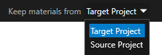 3. Select the checkboxes next to the items you want to merge from the source to target. Depending on the existence of the selected item in the target project, the name of the item is written using: