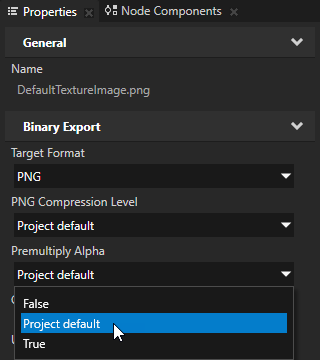 2. In the Properties set the Target Format property to the image format you want to use in your Kanzi application.
