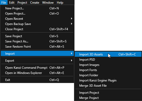 - In the Library > Resource Files > 3D Assets right-click the .fbx file that contains the NURBS curve and select Clean Import 3D Asset File.