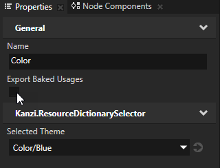 In Kanzi Studio when you export a kzb file for a baked Theme, Kanzi Studio replaces each resource ID in all nodes in that project with the resource to which the resource IDs point. In a baked Theme, the nodes do not get resources using resource IDs, but get the resources directly.