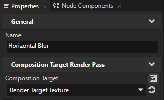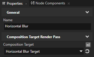 - In the Library select the Horizontal Blur render pass and in the Properties set the Composition Target property to Horizontal Blur Target.