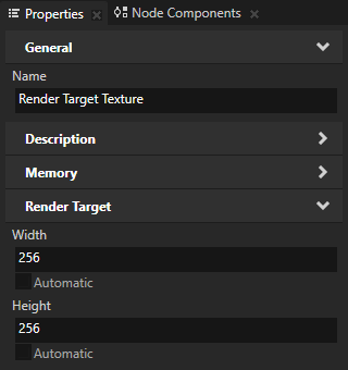 - In the Library > Materials and Textures > Textures select the Render Target Texture texture and in the Properties set: