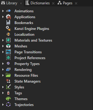 You can find all resources in a Kanzi Studio project in the Library window.
