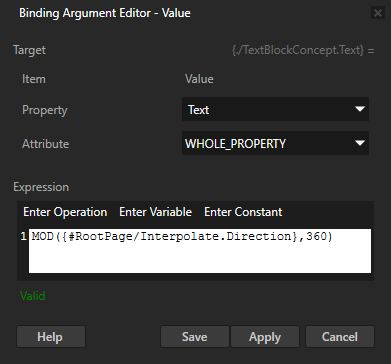 2. In the Project select the Direction > Value node, in the Properties in the Bindings click the existing binding, and in the Binding Argument Editor set the Expression to