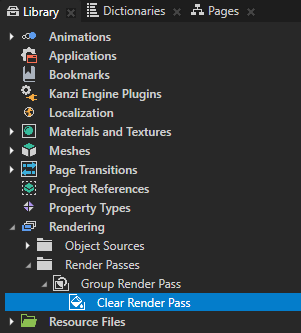 - In the Library > Rendering > Render Passes > Group Render Pass create a Clear Render Pass.