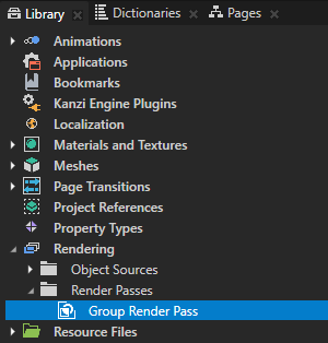 - In the Library press Alt and right-click Rendering and select Group Render Pass.