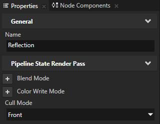 - In the Library > Rendering > Render Passes > Group Render Pass create a Pipeline State Render Pass, name it Reflection, and in the Properties set Cull Mode to Front.