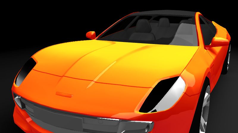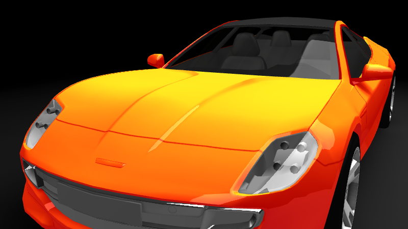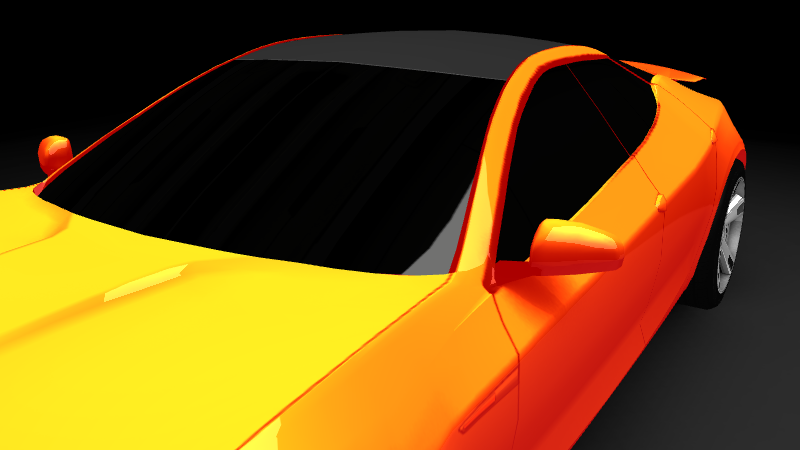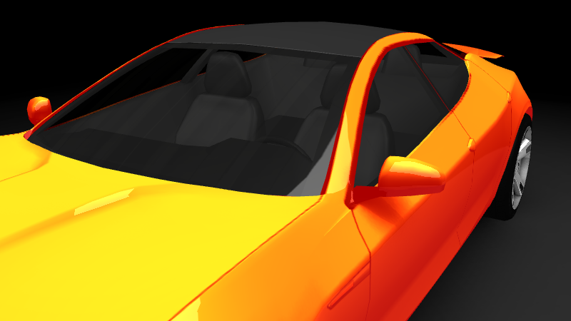The car is still missing transparent windows and the headlight glass. Again, you use the same cubemap texture for the windows and the headlight glass as you did for the main body of the car, because you want to have the same environment reflection on the windows and the headlight glass as you do on the car.