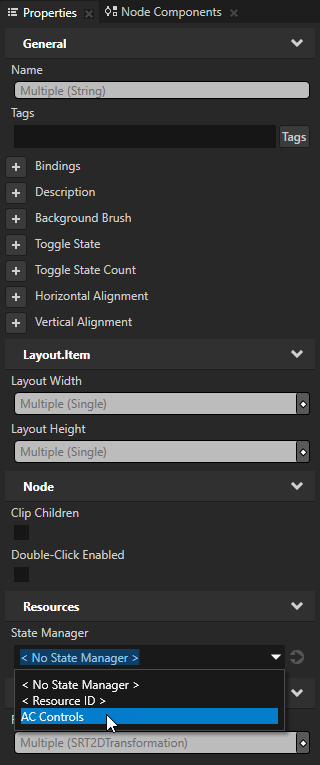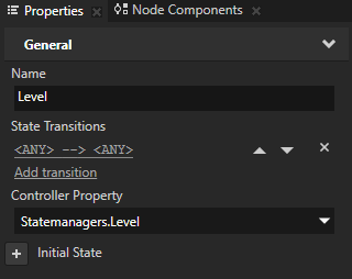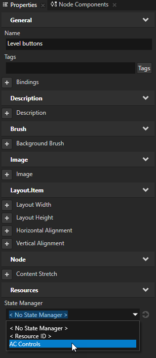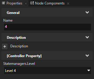 - In the Library > State Managers > AC Controls select the Level state group, and in the Properties set the Controller Property to Statemanagers.Level.